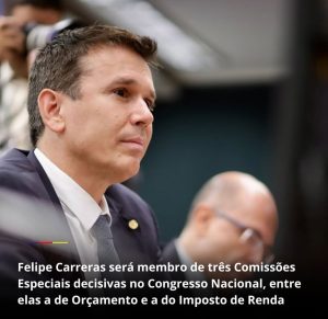 *Felipe Carreras será membro de três Comissões Especiais decisivas no Congresso Nacional, entre elas a de Orçamento e a do Imposto de Renda*