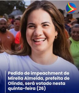 Diante do pedido registrado, o presidente da Câmara Municipal de Olinda, Saulo Holanda (MDB), levará ao plenário nesta quinta-feira (26), às 10h, a votação sobre a admissibilidade do pedido de impeachment.